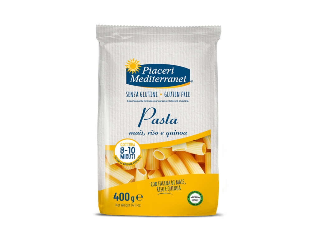 Penne rigate od Piaceri Mediterranei jsou navrženy tak, aby uspokojily i ty nejnáročnější strávníky na bezlepkové dietě. Kombinace žluté kukuřice, bílé kukuřice a rýže zajišťuje vyváženou chuť, zatímco příměs quinoi dodává těstovinám zajímavý nutriční profil.