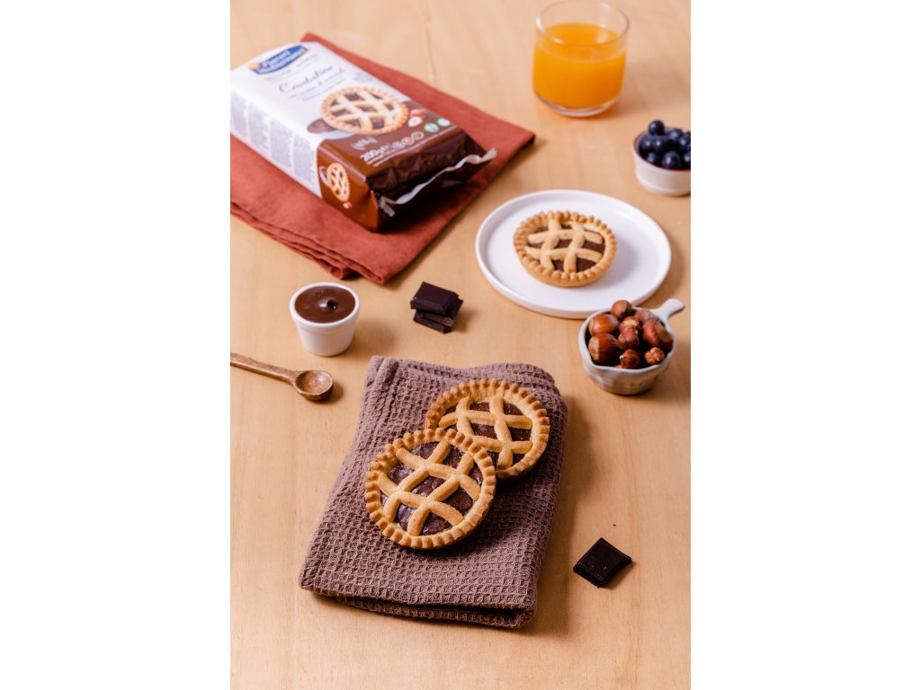 Crostatine con crema di nocciole od Piaceri Mediterranei jsou lahodné bezlepkové koláčky plněné krémem z italských lískových oříšků. Díky absenci mléka, vajec a palmového oleje jsou vhodné i pro vegany a osoby s potravinovými intolerancemi. Praktické balení po čtyřech kusech je ideální na cesty, do školy či do práce.