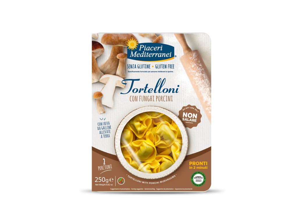 Bezlepkové tortelloni s hříbky – tradiční italská specialita v bezlepkovém provedení. Lahodná chuť a kvalitní suroviny pro nezapomenutelný gastronomický zážitek.